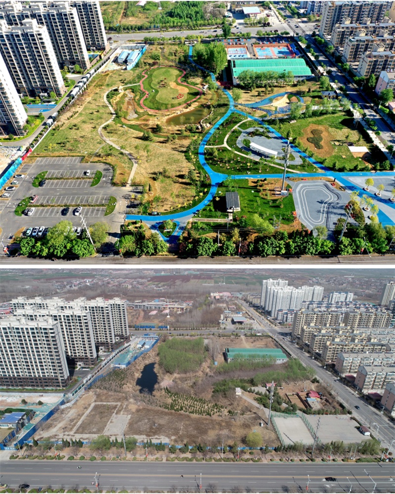 悦动公园改造前后对比图。 临城县住房和城乡建设局供图