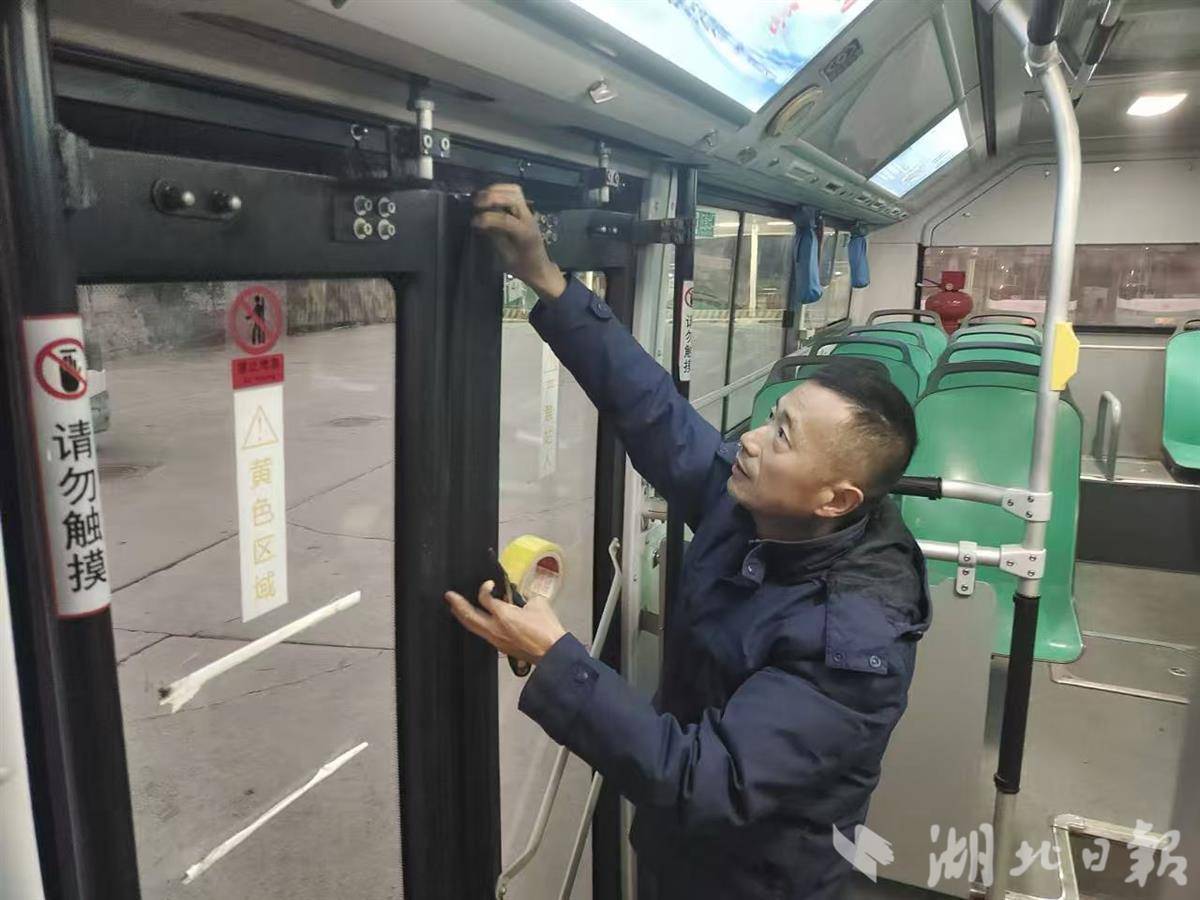 面对此次寒潮,武汉公交集团迅速行动,部署应对举措,全力保障市民出行安全与顺畅。17日一大早,在武汉公交922路起点龙泉公交停车场,工作人员正忙着对车辆进行全面检查。“我们重点检查了车辆的门窗密封情况,确保寒冬里冷风不会灌进车厢。”武汉公交五公司十六车队站长邓传武一边拿着工具检查车门密封条,一边说:“除了门窗,我们还对车辆的暖风系统进行了调试,只要实时气温达到8摄氏度以下,暖风就会及时开启,让乘客在车厢里能感受到温暖。”