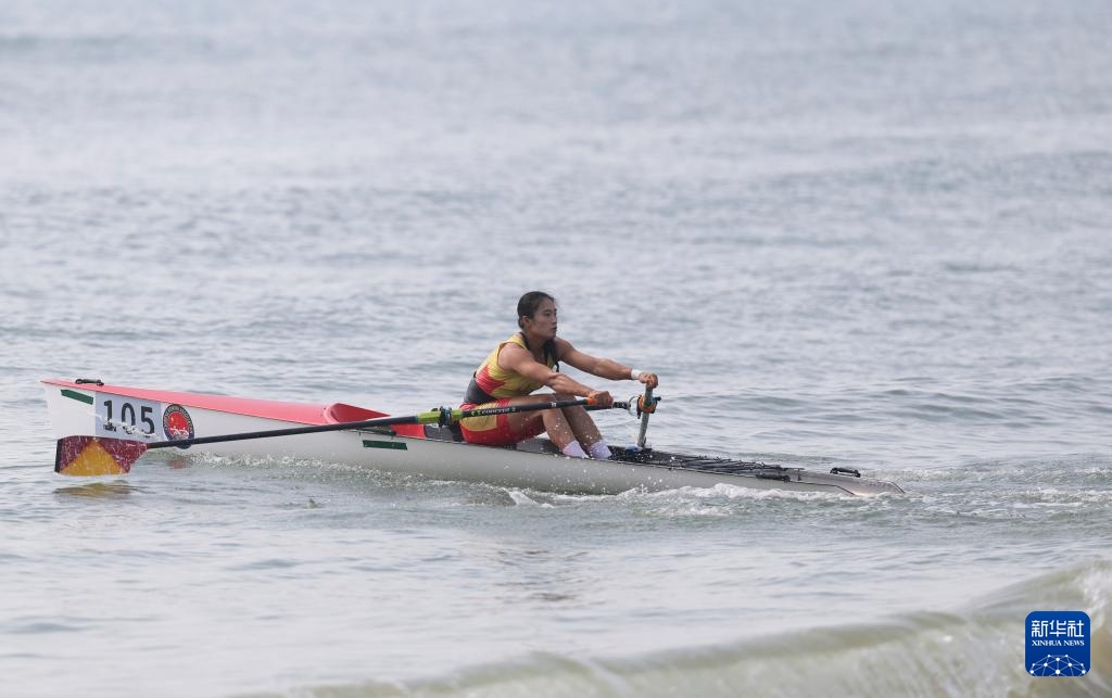 当日,在广东阳江举行的第十五届全国运动会海岸赛艇女子单人双桨决赛A中,辽宁队选手马冰冰战胜山东队选手张玉婷,夺得冠军。