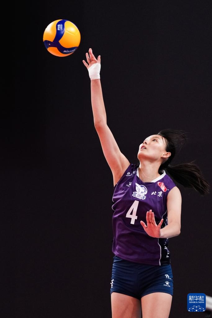 11月17日,北京队球员杨璐菡在比赛中发球。