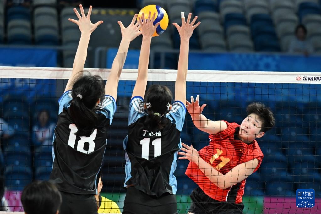 当日,在深圳进行的第十五届全国运动会排球女子18岁以下组5-8名半决赛中,山东队3比1战胜广东队。