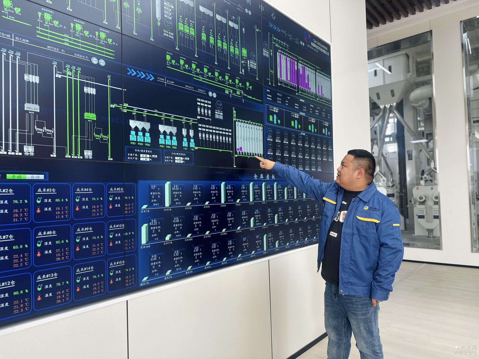 去石、砻谷、筛分等35道工序在全自动化系统中完成,只有偶尔巡视的技术人员和空气中弥漫的米香提醒着这里正在生产。