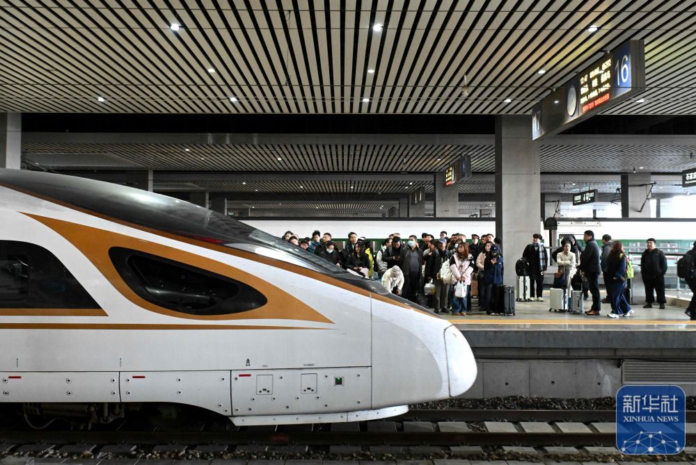 ↑ 11月16日,旅客在河北石家庄火车站准备乘车。新华社发(陈其保摄)