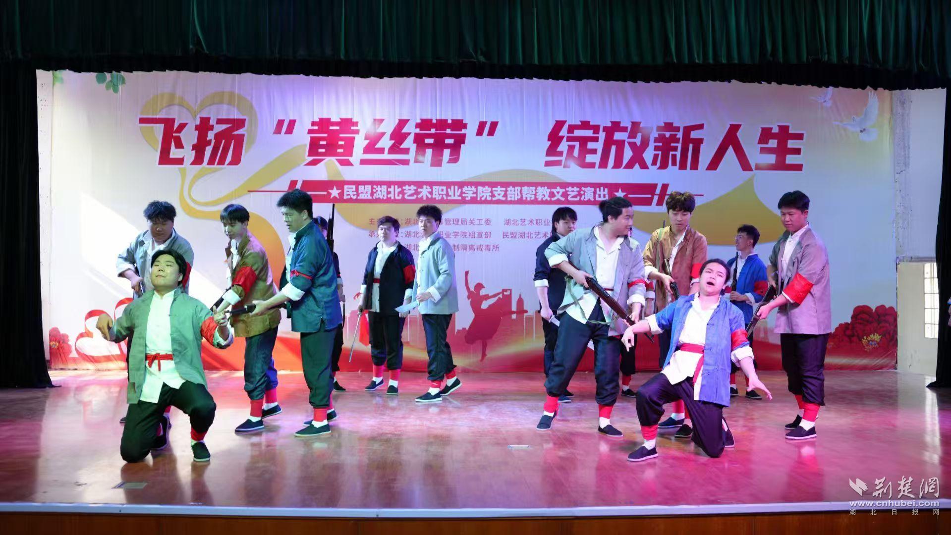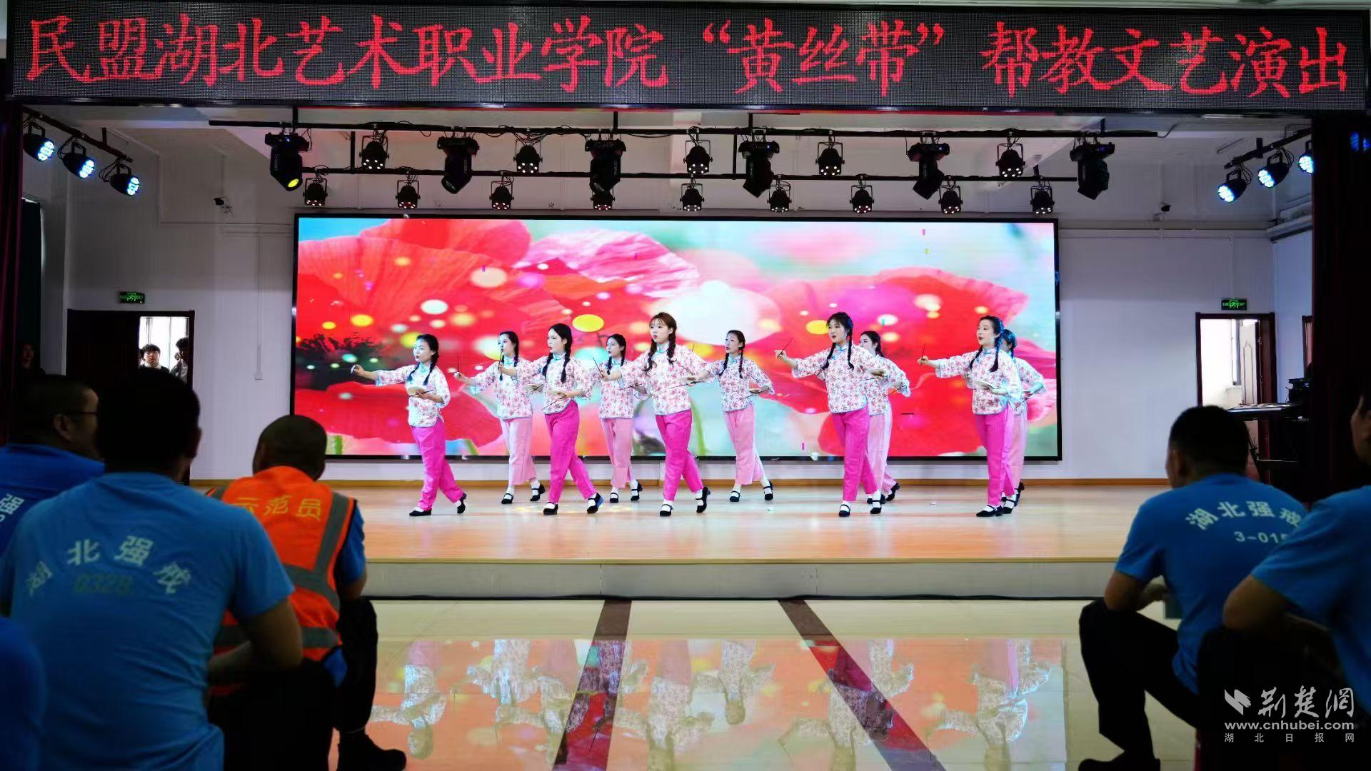 在湖北省司法行政部门和民盟湖北省委的指导支持下,民盟湖北艺术职业学院支部充分发挥艺术专业优势,创新构建了“艺术—法治—心理”三位一体的社会帮教模式。团队深入湖北省江城监狱、省女子戒毒所、狮子山戒毒所等单位,累计开展“情暖高墙 以爱之光”“飞扬黄丝带 携手迎新生”等主题文艺演出10余场,参与师生达200余人次。通过歌曲、舞蹈、曲艺、话剧等多元艺术形式,团队将高质量的文艺节目送进高墙,在《一堂党课之风云武汉》等剧目的深情演绎中,唤醒迷途者对家国的热爱与新生的渴望;在评书《在渐冻中永生》的励志故事中,传递生命的力量与勇气。