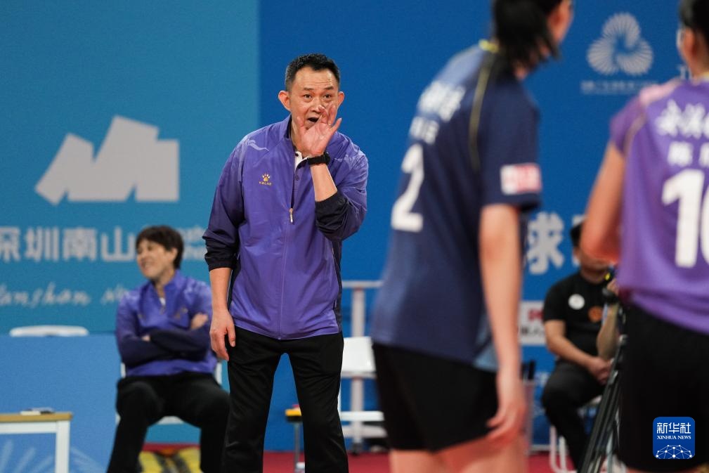 11月17日,内蒙古队教练王琳在场边指导球员。