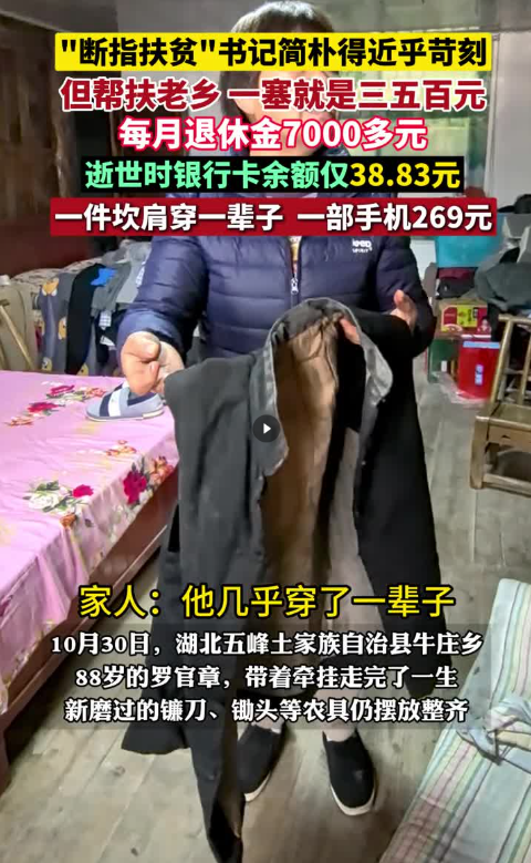 10月30日,88岁的罗官章走了。女儿在清理遗物时,发现他唯一的银行卡余额仅有38.83元。