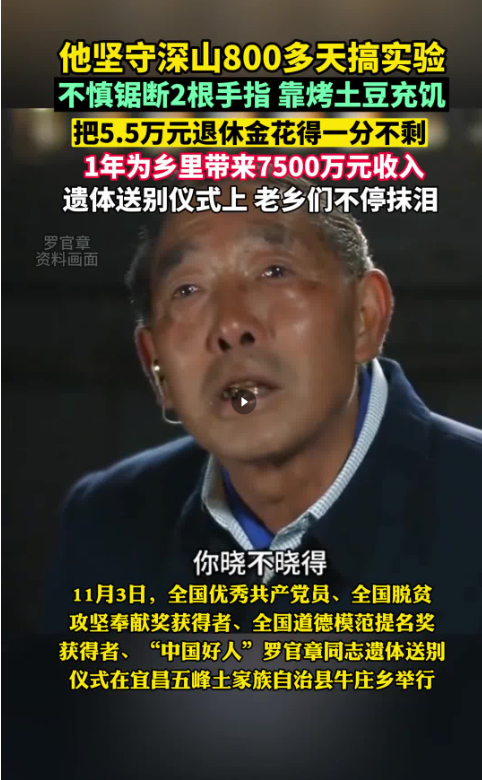 牛庄乡曾是当地最贫困的乡镇。脱贫前,乡亲们每遇到难处,罗官章都会慷慨解囊。而他自己去世前的最后一顿饭,只是几个烤洋芋。