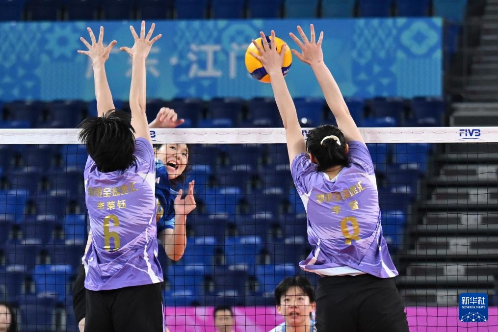 当日,在江门进行的第十五届全国运动会排球女子20岁以下组1-4名半决赛中,上海队3比0战胜天津队。