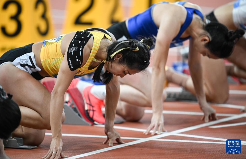 11月17日,浙江队选手陈妤颉(左二)在比赛前准备起跑。最终,她晋级决赛。