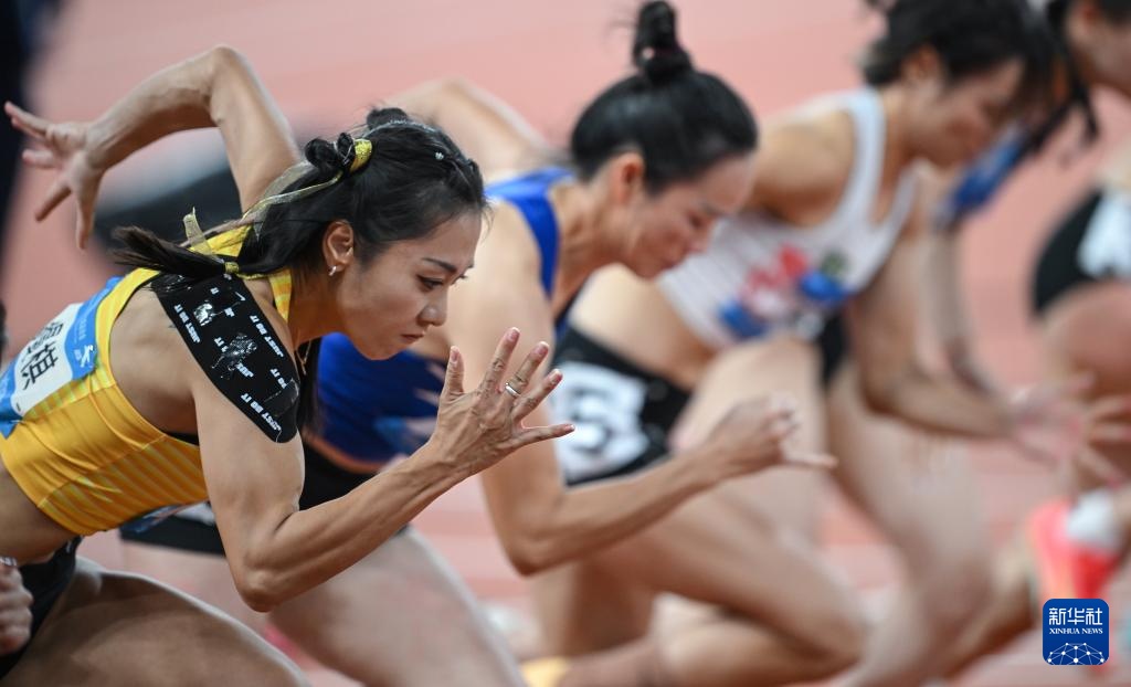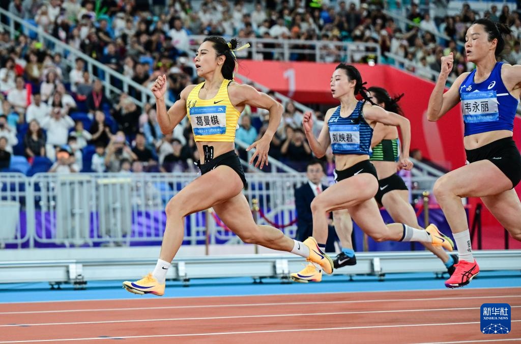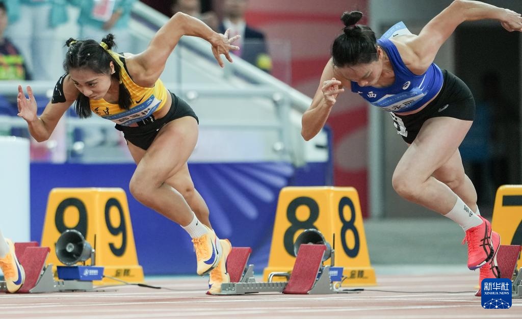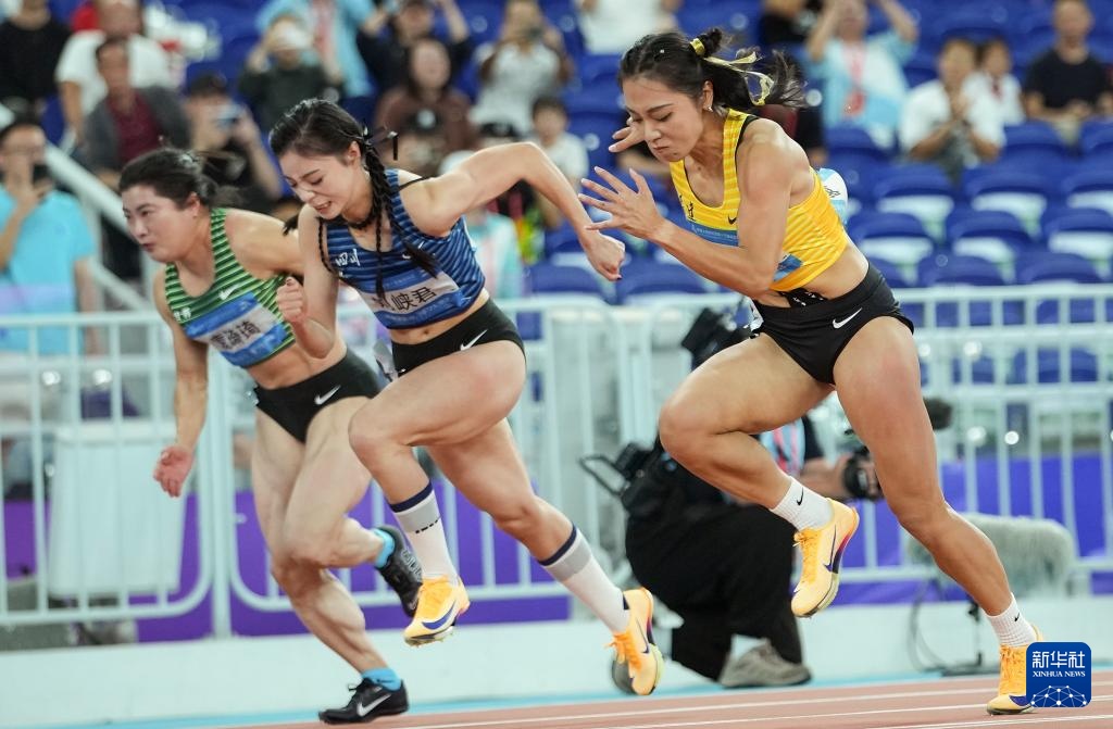 当日,第十五届全国运动会田径女子100米复赛在广州举行。