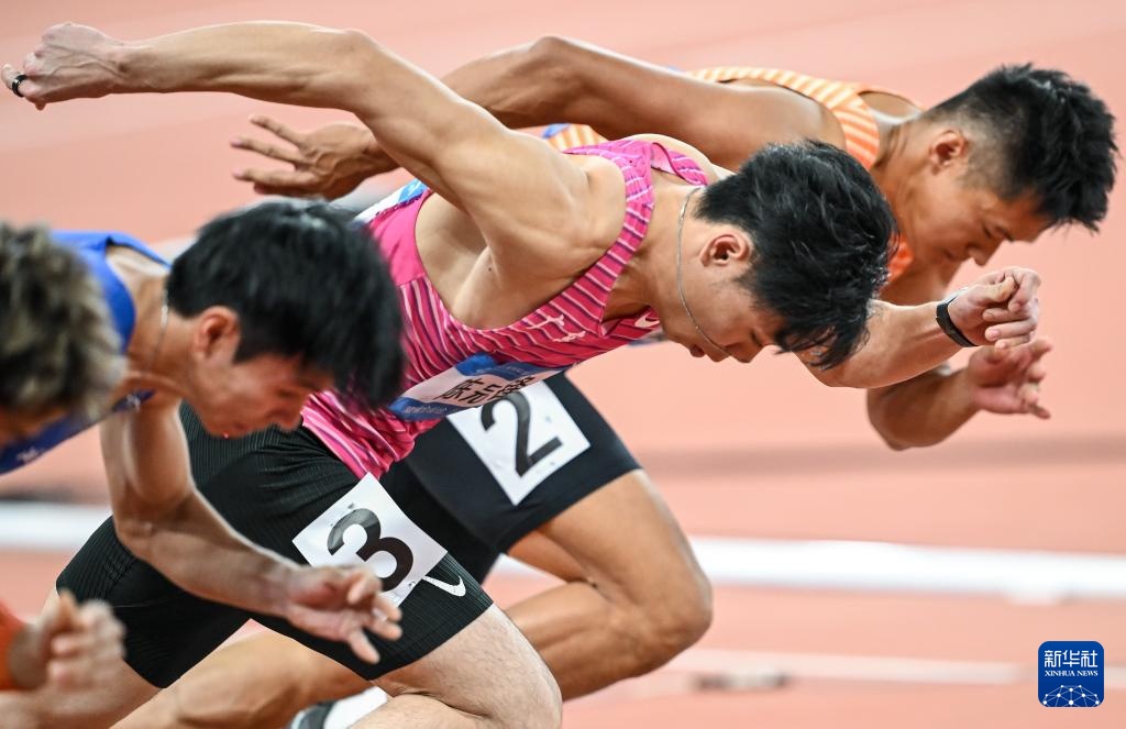 11月17日,广东队选手陈冠锋(右一)在比赛中起跑。最终,他晋级决赛。