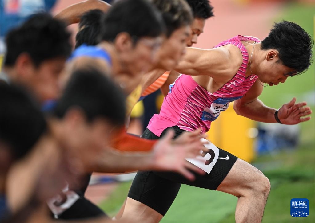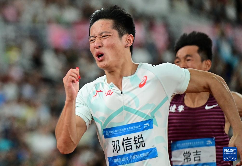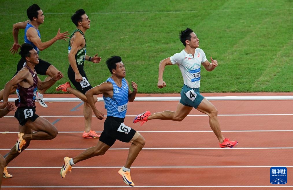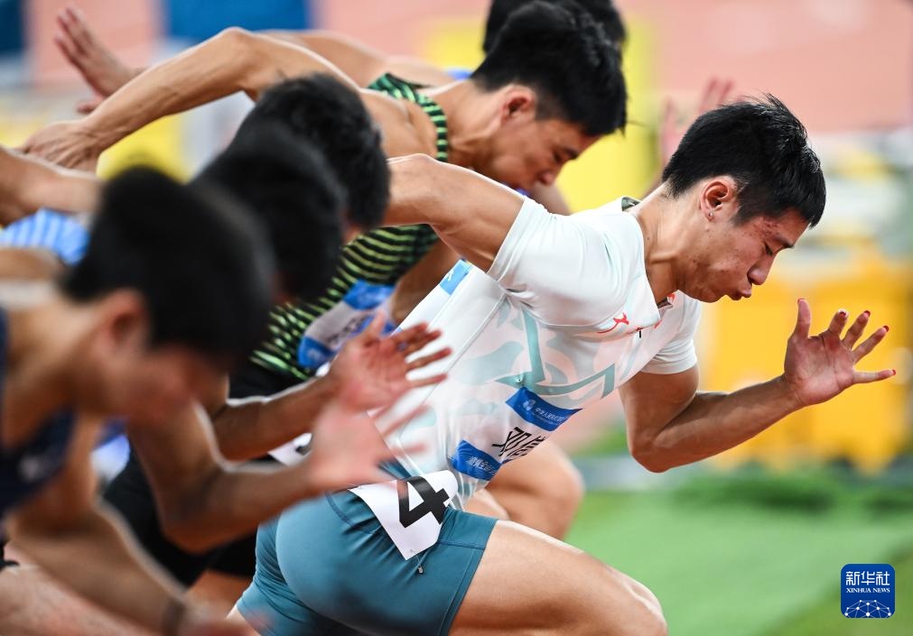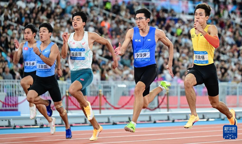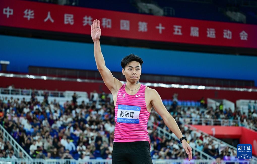 当日,第十五届全国运动会田径男子100米复赛在广州举行。