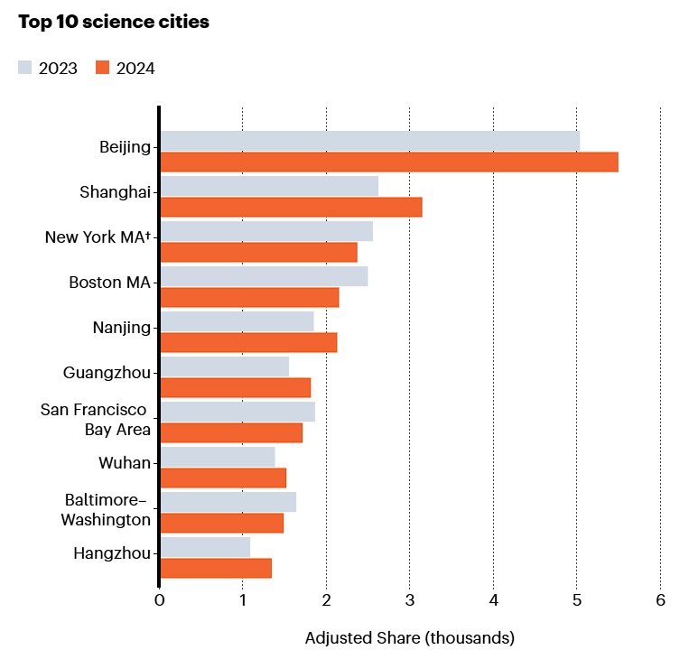 湖北日报讯(记者马文俊)11月16日,施普林格·自然在线发布《自然》增刊“2024自然指数—科研城市”。最新榜单显示,全球科研城市前十强中,中国城市首次占据六席,实现数量领先。其中武汉市表现亮眼,全球排名升至第8位。