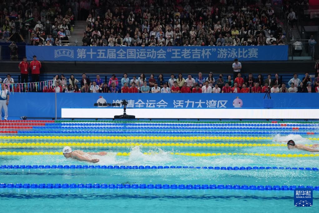 当日,第十五届全国运动会游泳男子4X100米混合泳接力决赛在广东省深圳市举行。