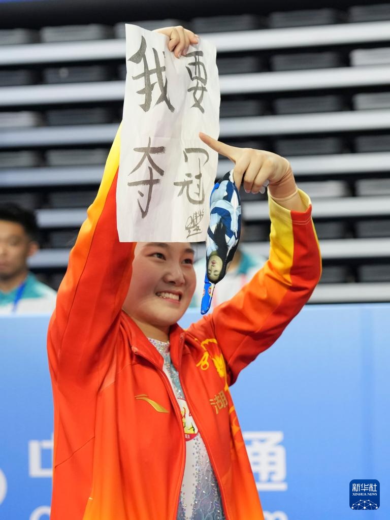 11月17日,湖北队选手赵佳怡在比赛后庆祝夺冠。