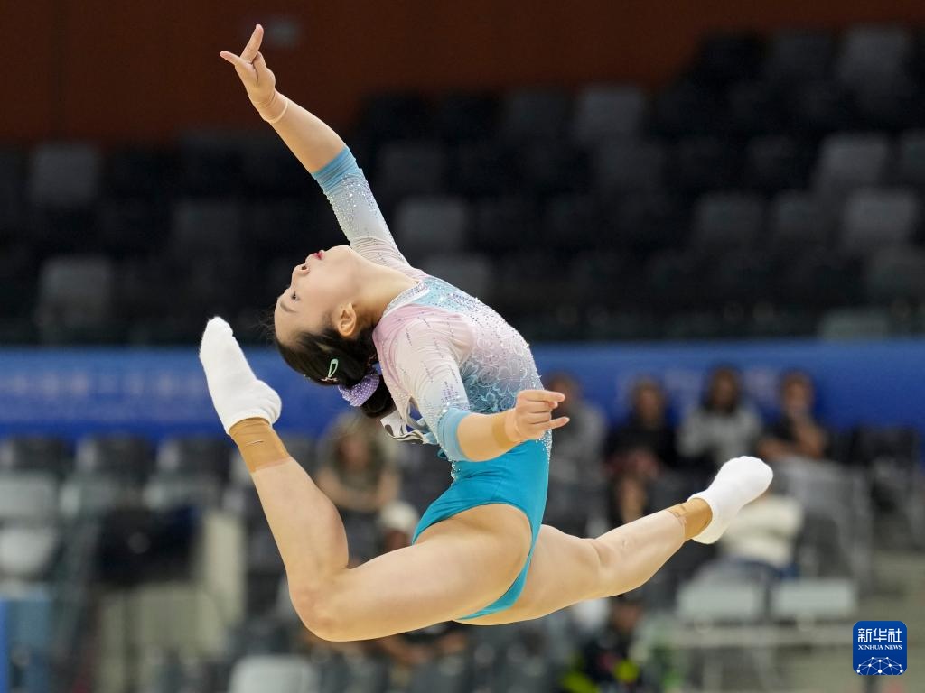当日,第十五届全国运动会体操项目女子自由体操决赛在广东肇庆举行。