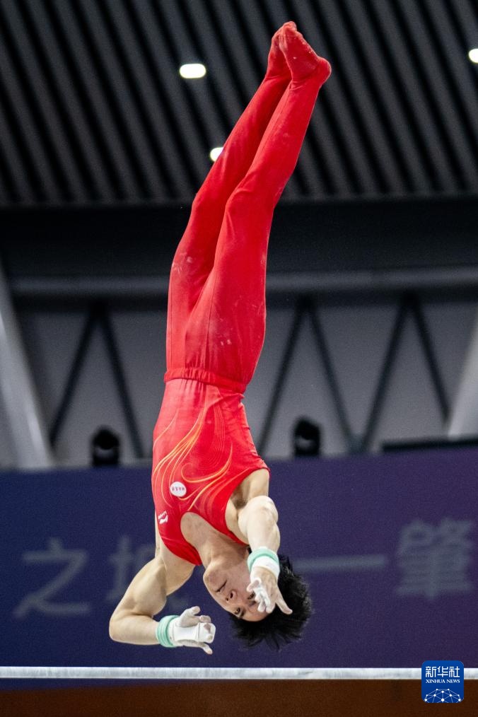 当日,第十五届全国运动会体操项目男子单杠决赛在肇庆举行。