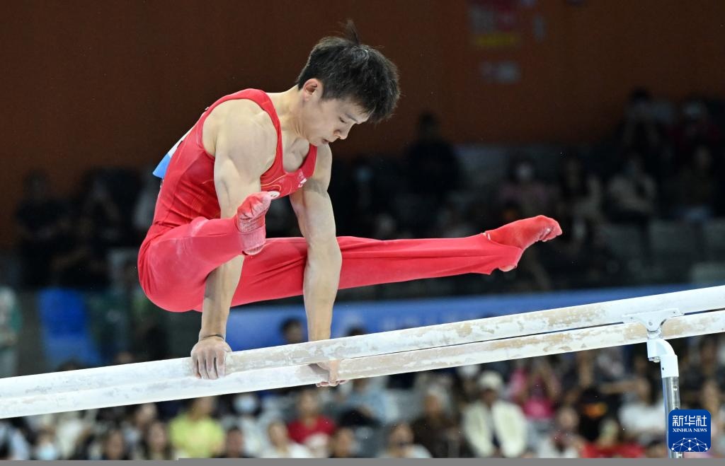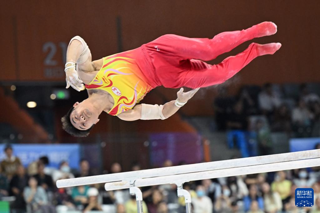 当日,第十五届全国运动会体操项目男子双杠决赛在广东肇庆举行。