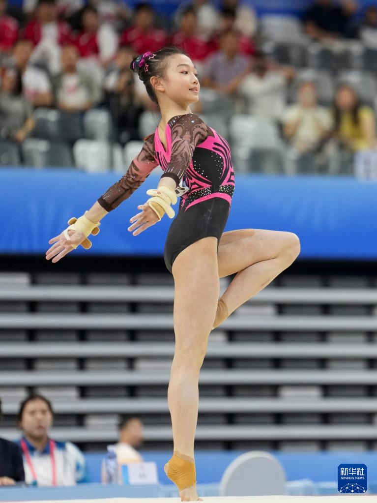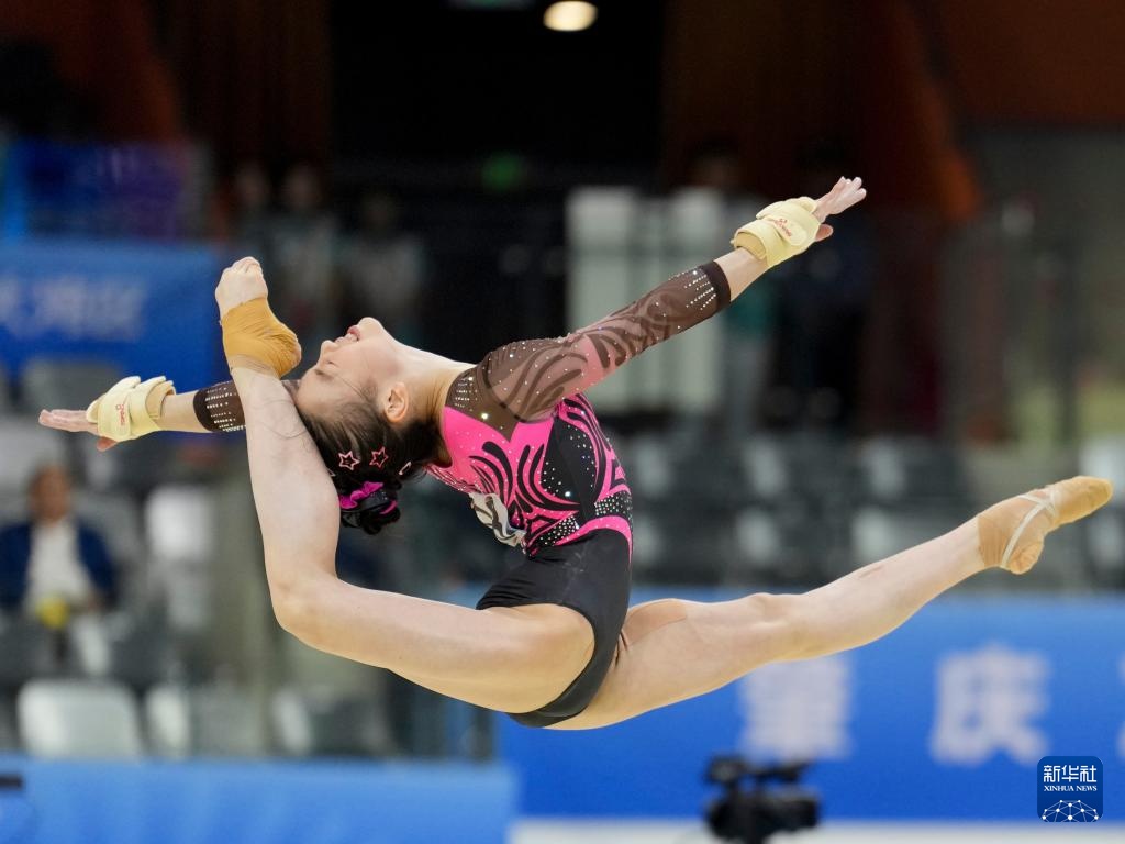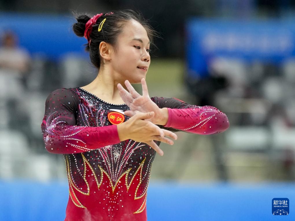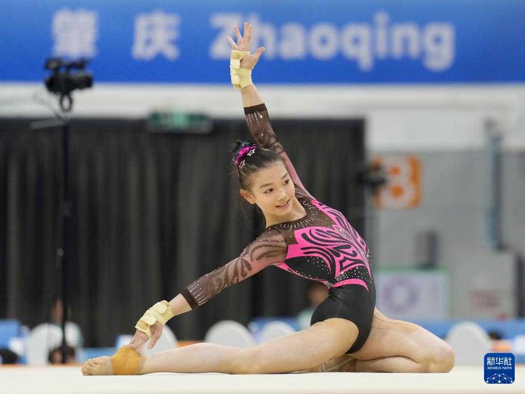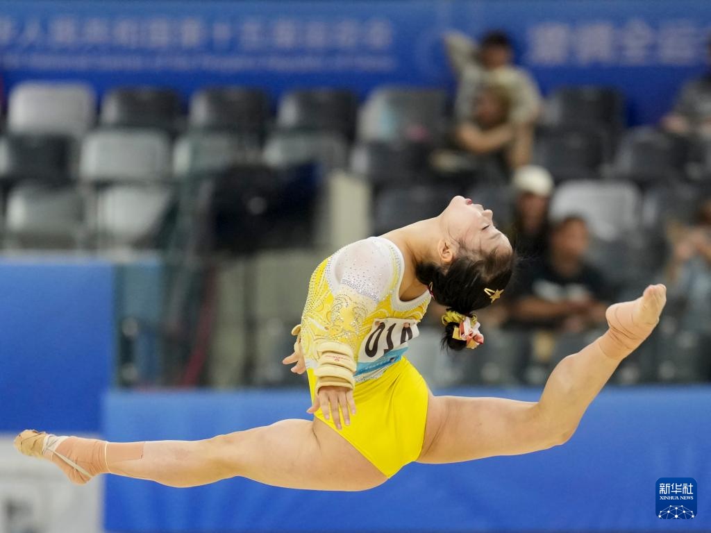 当日,第十五届全国运动会体操项目女子自由体操决赛在广东肇庆举行。