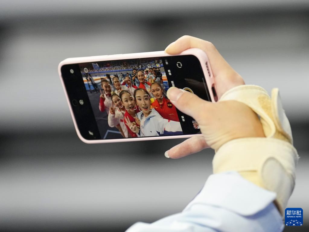 11月17日,参赛选手在比赛后自拍。