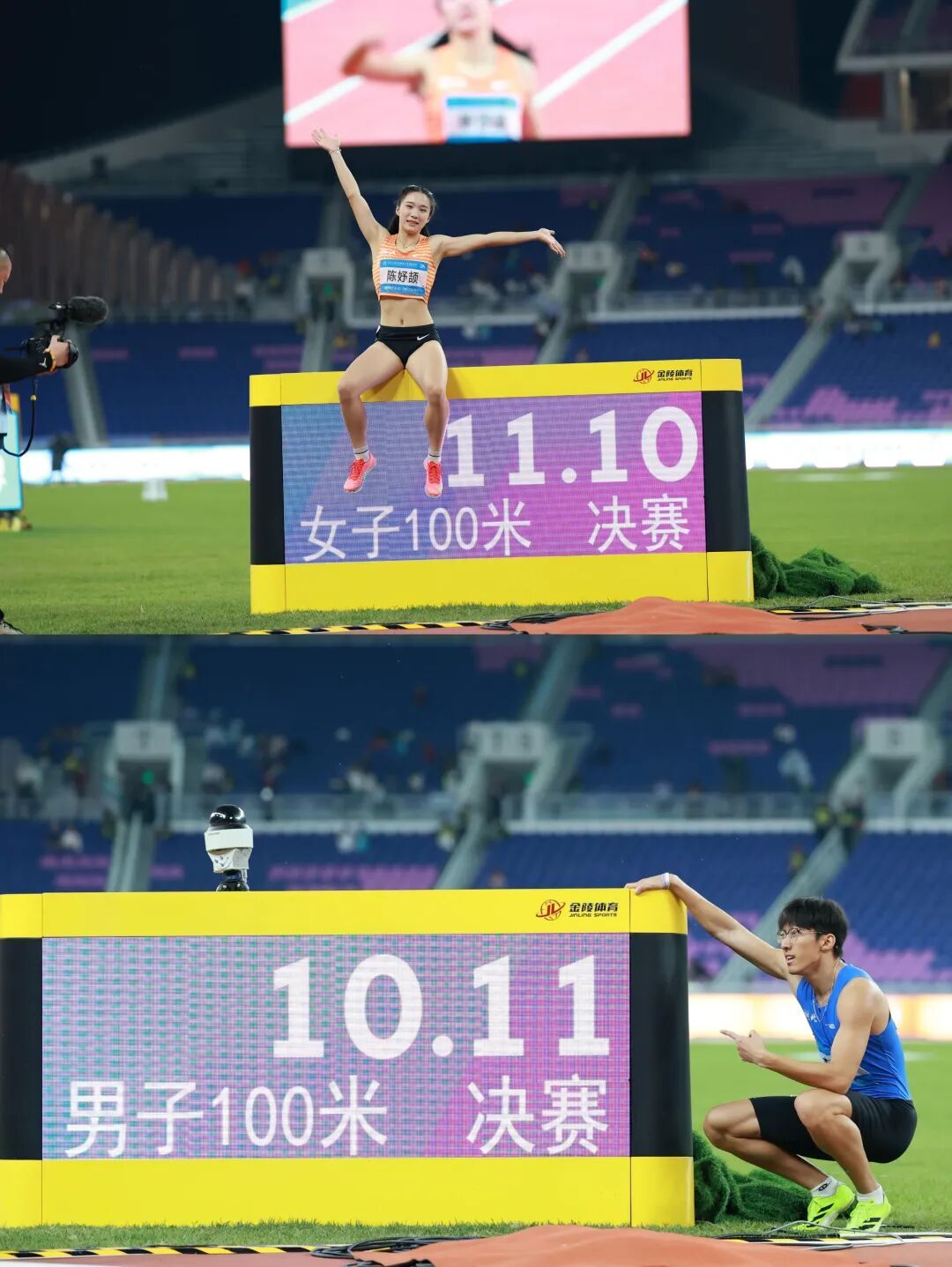 全场灯光熄灭,观众屏气凝神——11月17日晚,广东奥体中心体育场,百米“飞人大战”即将上演。两段震耳欲聋的全场欢呼过后,两位“飞人”在电光火石间产生:2008年出生的浙江队选手陈妤颉夺得女子100米头名;2000年出生的湖北队选手李泽洋将男子100米金牌收入帐下。全运会田径项目两场“飞人大战”的冠军首次归属于“00后”运动员。