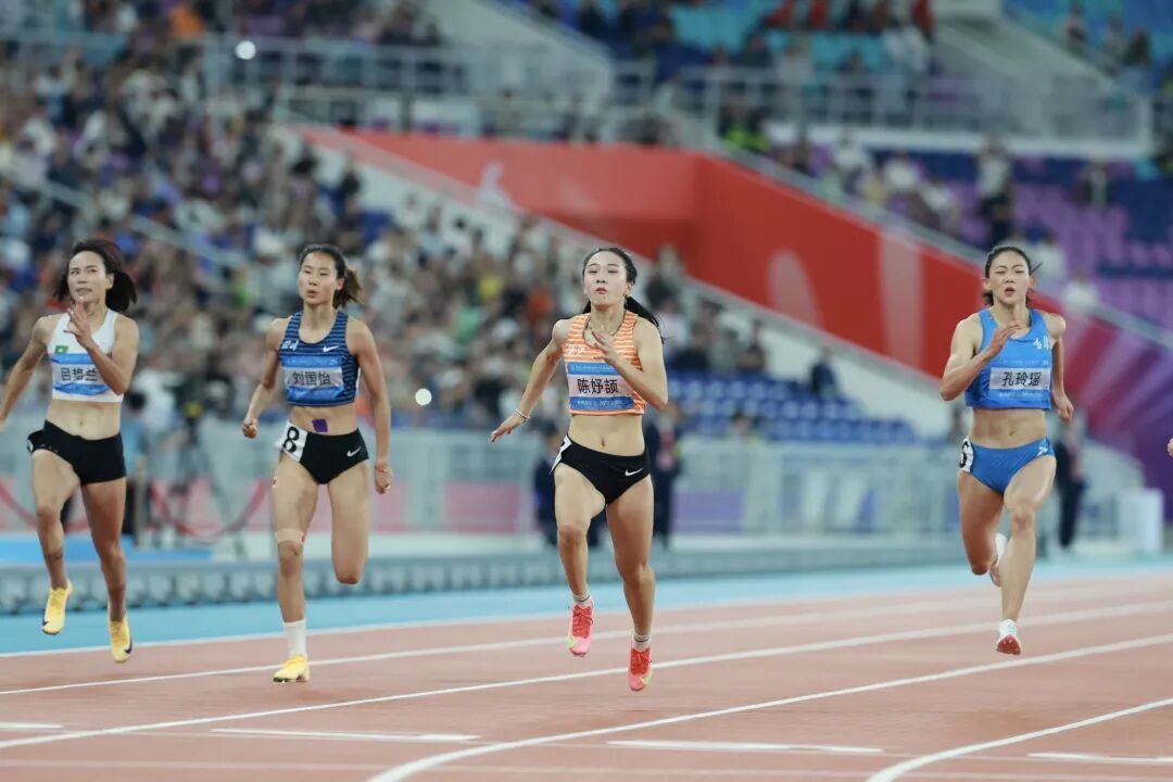 女子100米决赛,未满17岁的陈妤颉自起跑便处于领先位置,最终以11秒10的成绩夺得冠军。这个成绩不仅刷新了由她自己保持的亚洲青年(U20)纪录,也成为全运会历史上最年轻的女子100米冠军。34岁的广西队名将韦永丽以11秒37的成绩夺得银牌,安徽队的史琳琪以0.01秒之差收获铜牌。