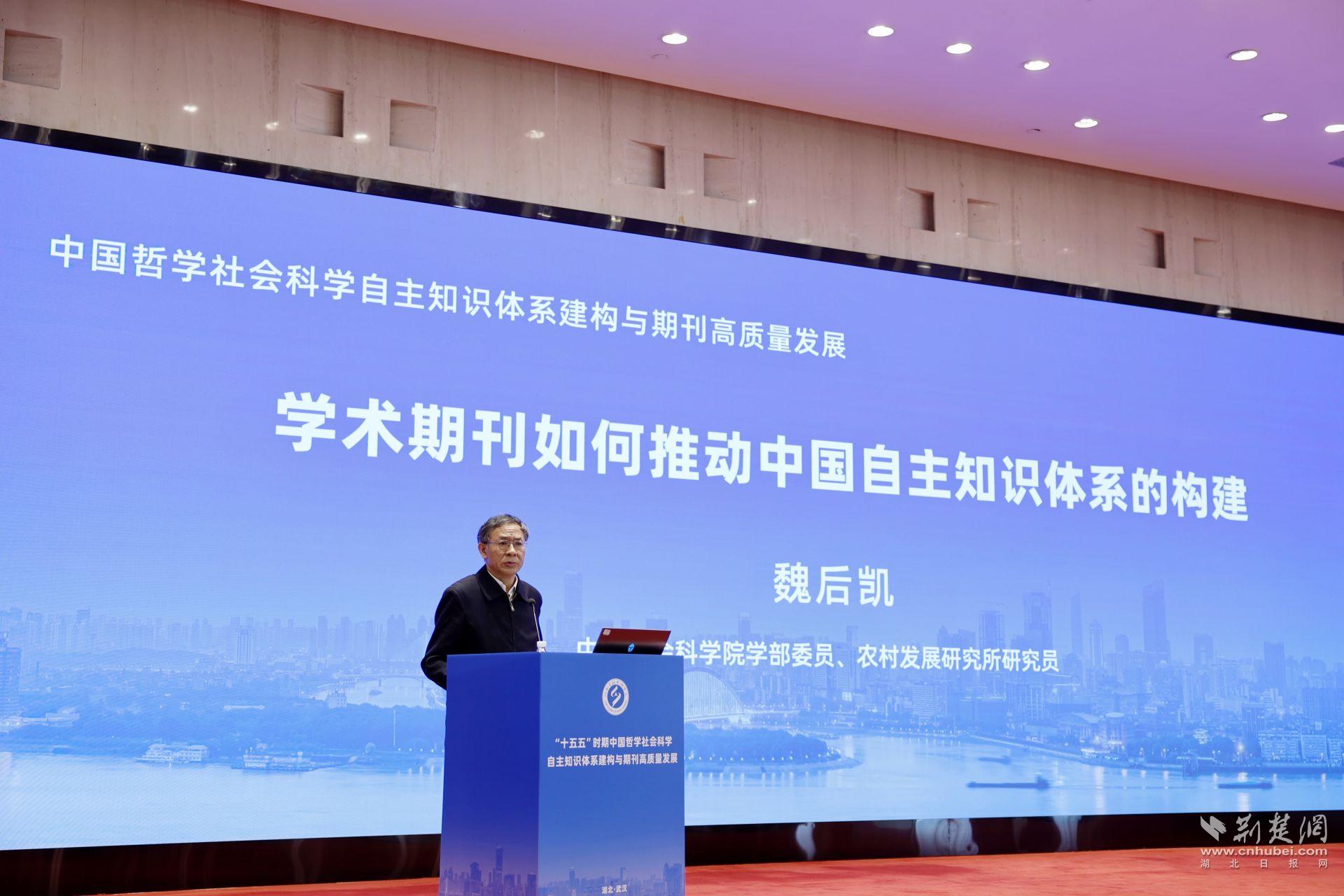 主旨发言环节由中国社会科学院学部委员魏后凯、湖北省社会科学界联合会主席赵凌云、武汉大学党委常务副书记沈壮海、复旦大学马克思主义研究院副院长周文、华南农业大学文科资深教授罗必良、中南财经政法大学副校长陈柏峰、华中师范大学教授江畅、武汉大学哲学学院院长李佃来、武汉大学文学院教授方长安等9位国内知名专家学者、6位评价机构或期刊代表围绕会议主题,作了精彩分享。湖北省社会科学院副院长、《江汉论坛》主编袁北星主持该环节会议。