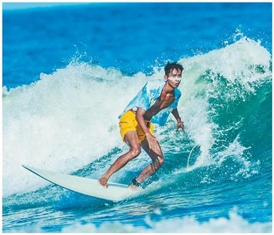 广东惠州,爱好者在冲浪。