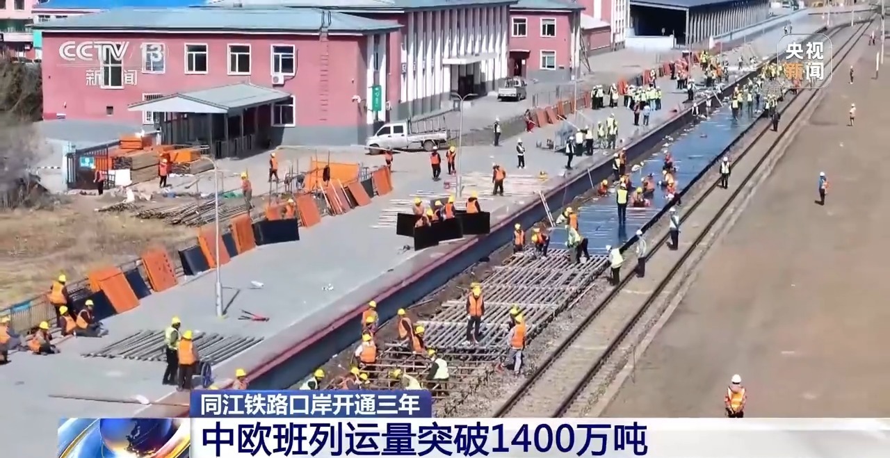 记者今天(18日)从国铁哈尔滨局了解到,中欧班列东通道同江铁路口岸开通三年来,货运量已累计突破1400万吨。