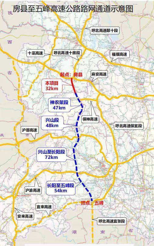 房五高速是《国家公路网规划》规划的一条国家高速公路,起点位于十堰市房县,终点位于宜昌市五峰土家族自治县,主要分成房县、神农架、兴山、兴长、五峰等5段修建,建设里程全长251公里,桥隧比达87.88%,为湖北省桥隧比最高的交通工程。其中,兴长段与房县段已动工,其他项目正在积极推进。