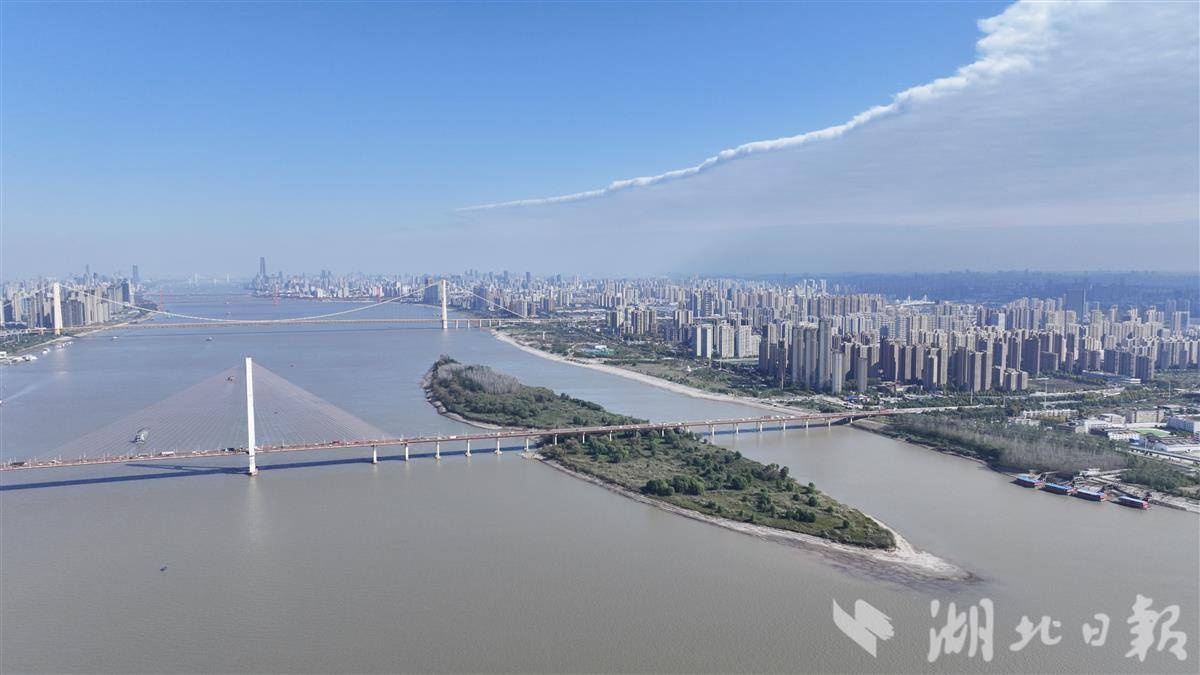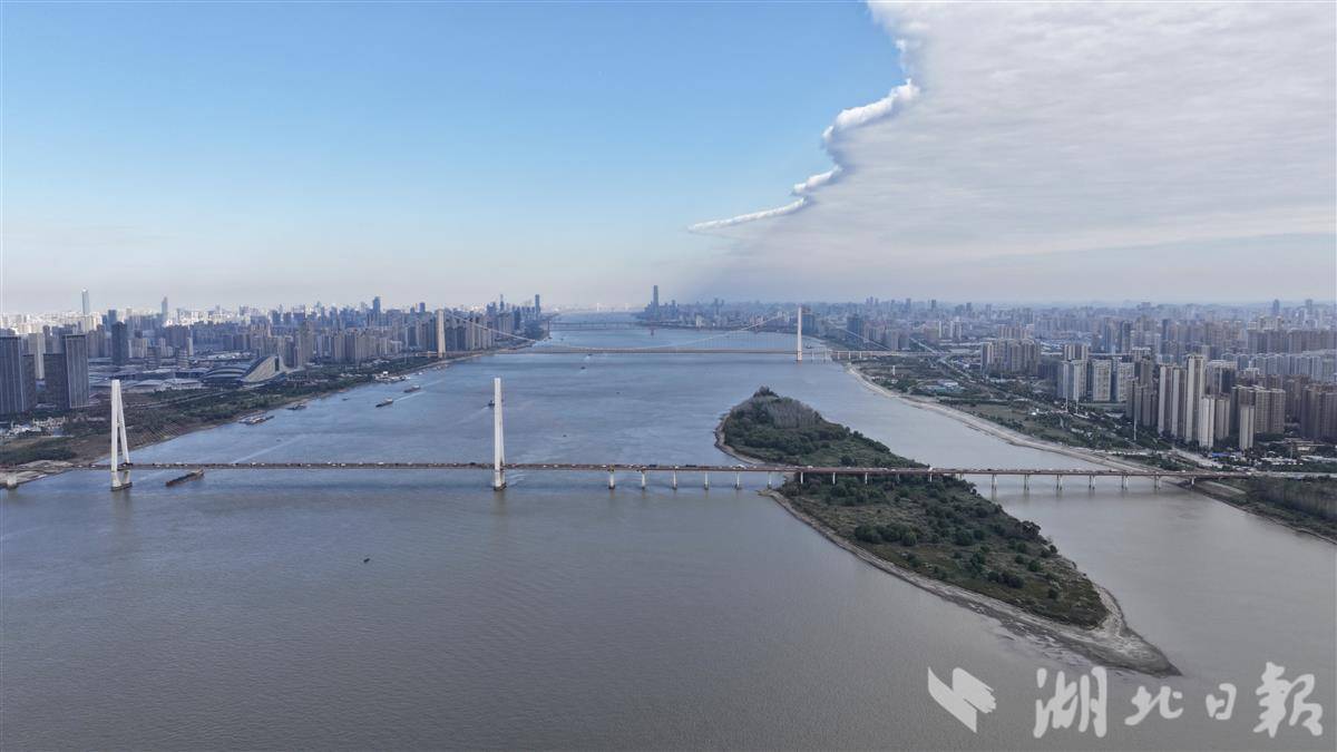 上午11:00,北风劲吹,推开城市上空云层,露出“武汉蓝”。
