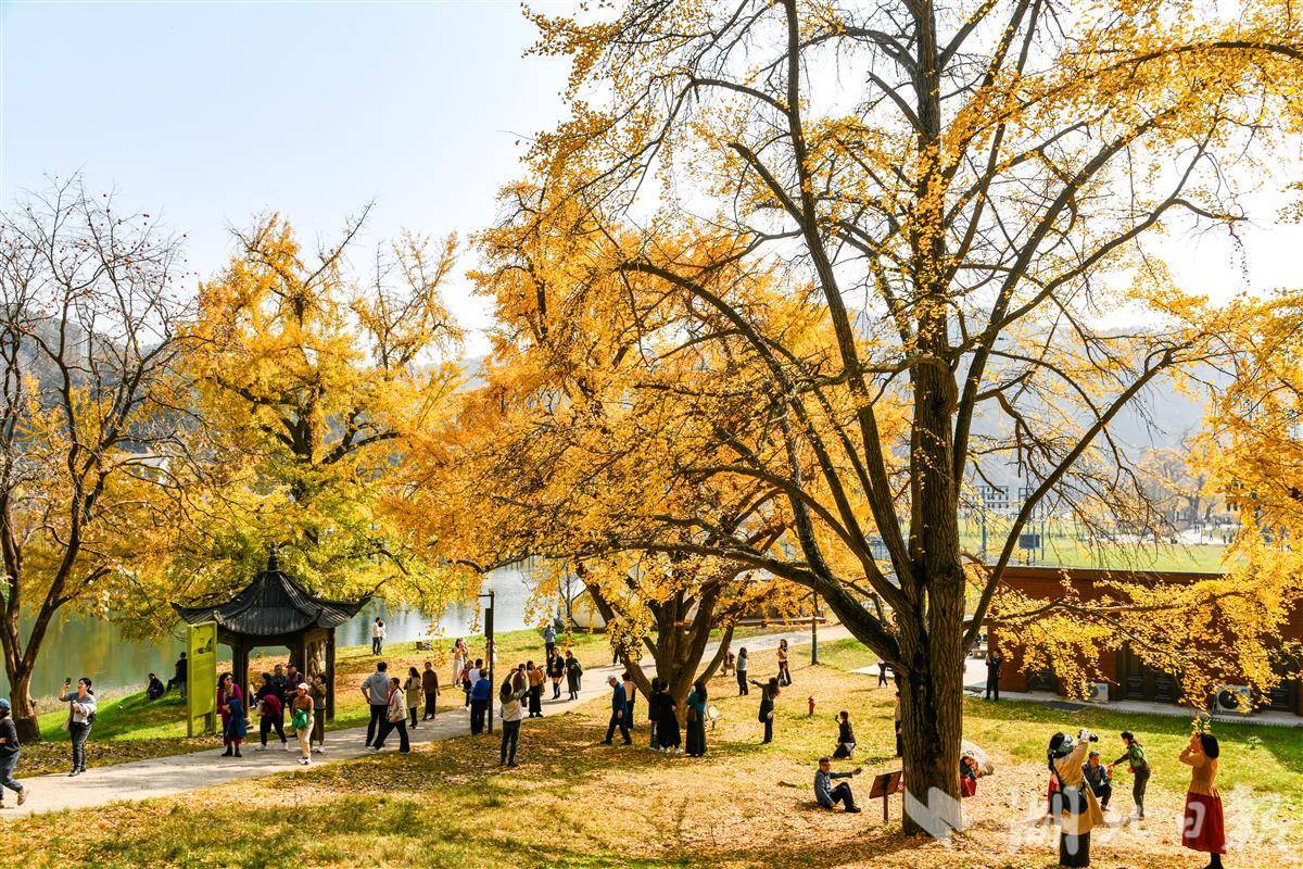11月14日,随州市千年银杏谷文化旅游区景美如画,游人如织。