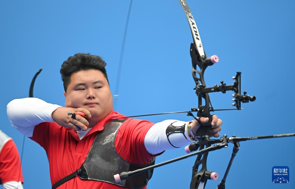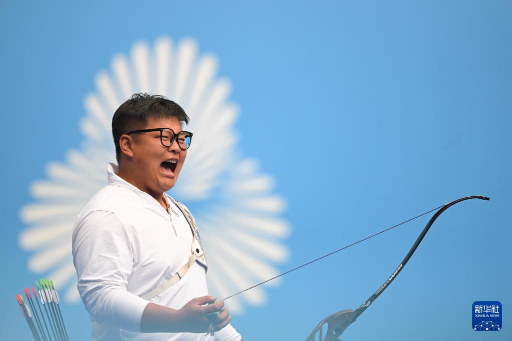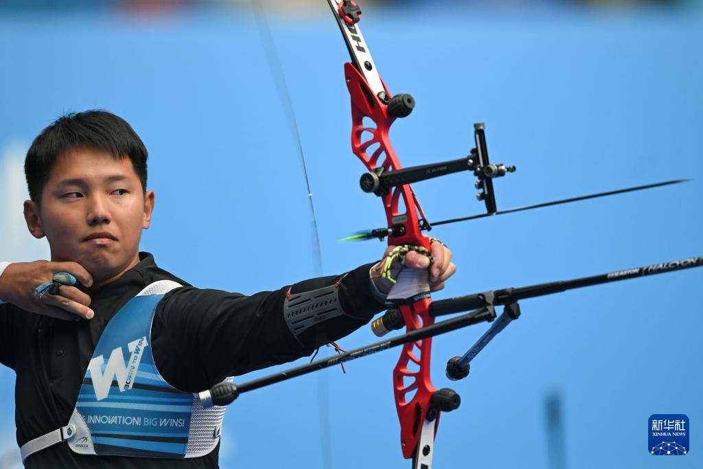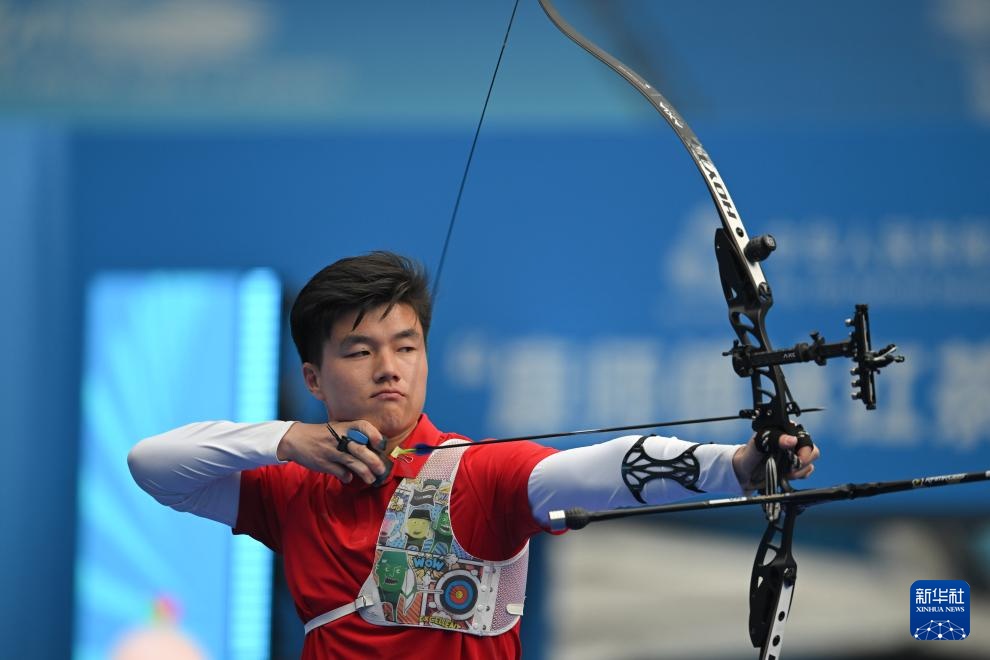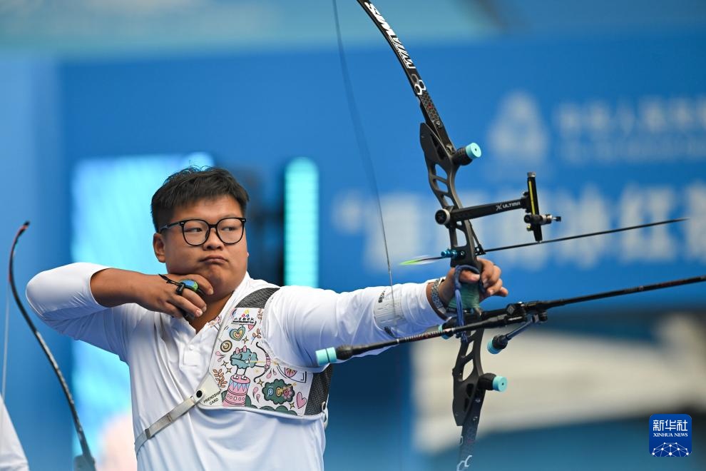 当日,第十五届全国运动会射箭男子反曲弓团体四分之一决赛在深圳举行。