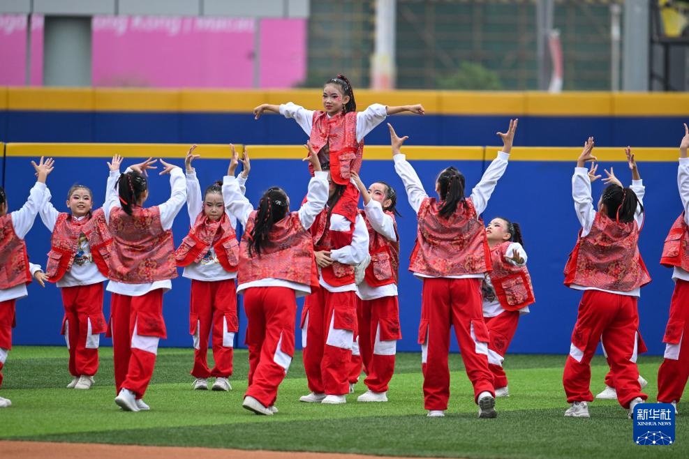 11月18日,赛前小朋友进行舞蹈表演。