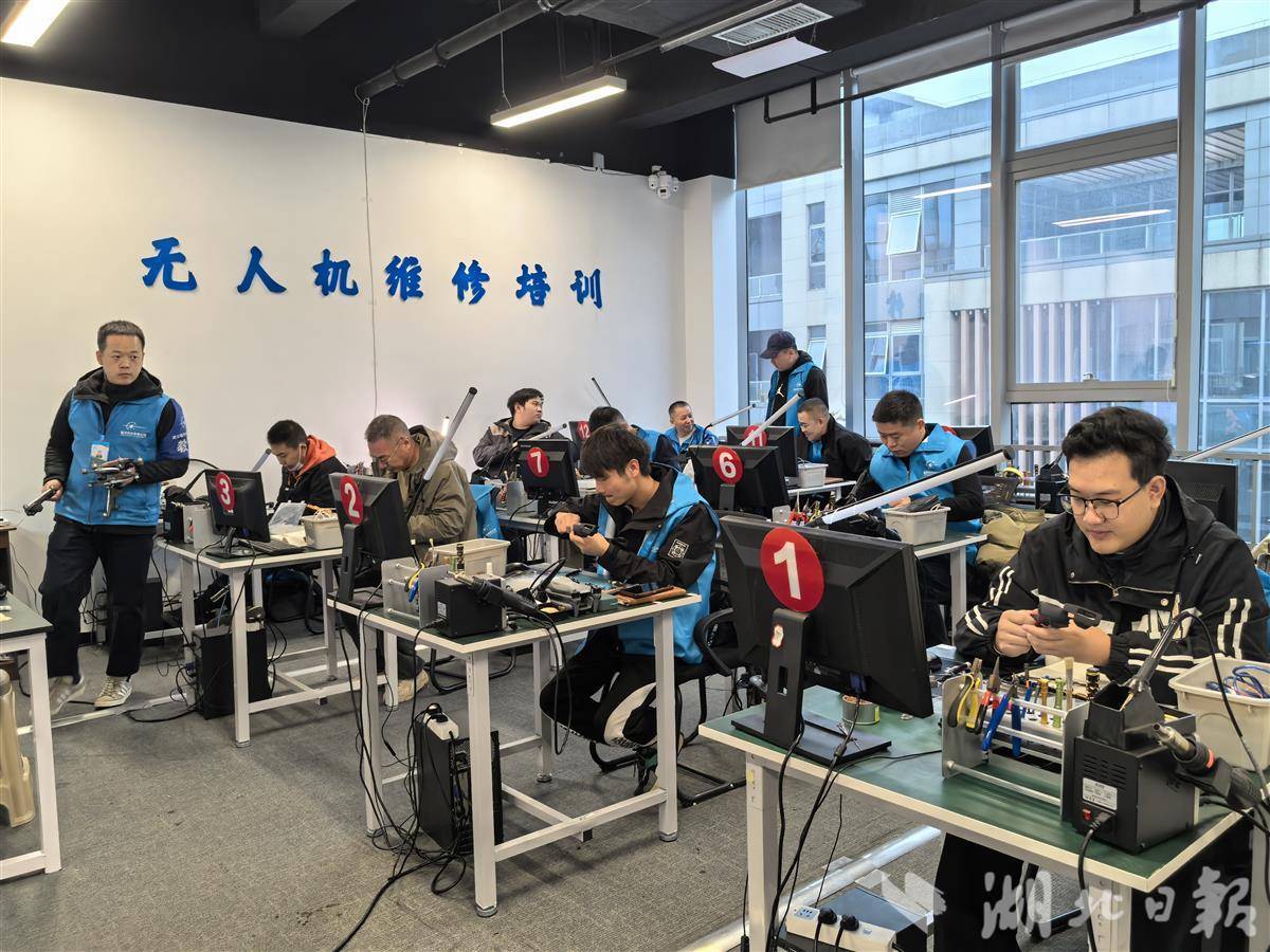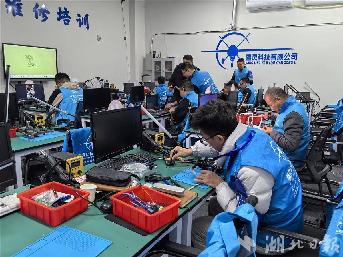 11月17日,武汉疆灵科技有限公司内,学员正在学习拆解无人机。湖北日报全媒记者王艳华 摄