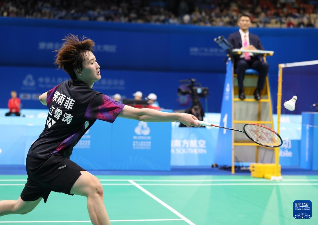 当日,在深圳举行的第十五届全国运动会羽毛球女单半决赛中,浙江队选手陈雨菲2比0战胜福建队选手韩悦,晋级决赛。