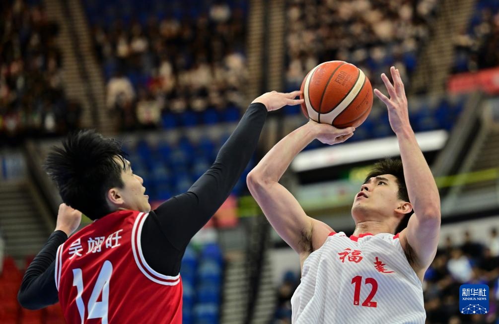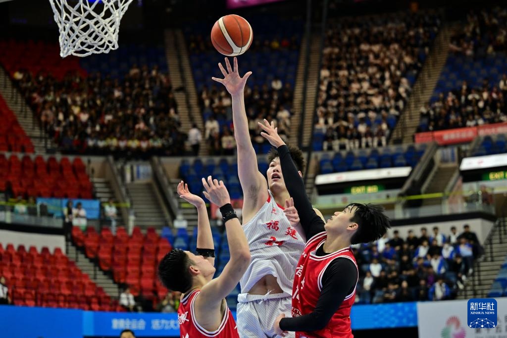 11月18日,福建队球员曾凌铉(左)在比赛中控球。