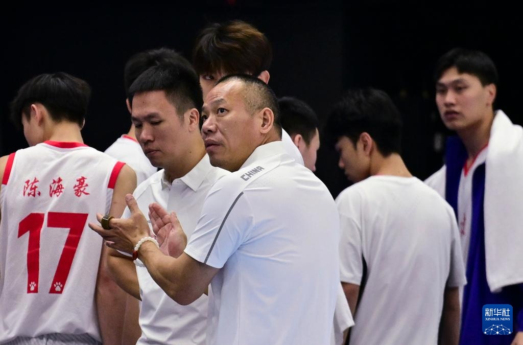 11月18日,福建队主教练沈小勇(前)在比赛间隙鼓励队员。