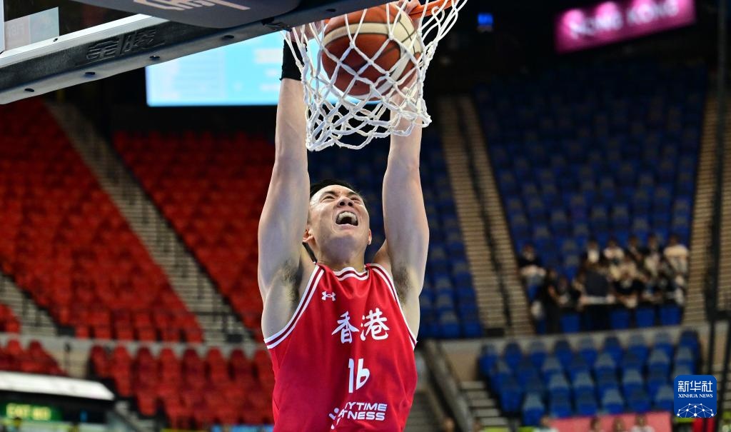11月18日,香港队球员杨博文在比赛中扣篮。