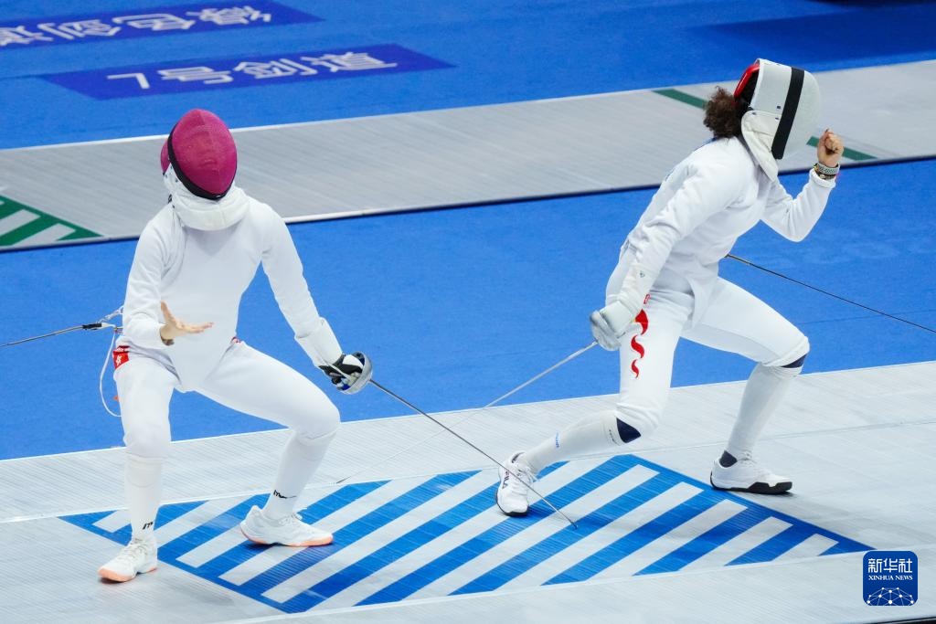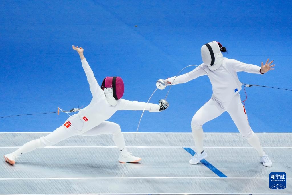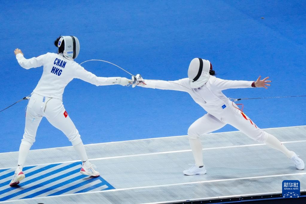 11月18日,北京队选手梁馨艺(右)和香港队选手佘缮妡在比赛中。