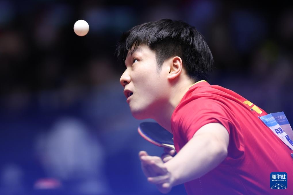 当日,在澳门举行的第十五届全国运动会乒乓球男子团体半决赛中,上海队对阵黑龙江队。