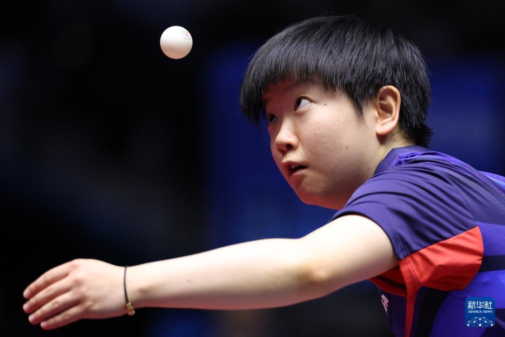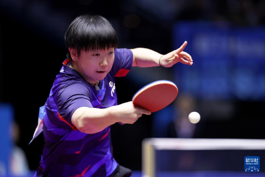 11月18日,河北队选手孙颖莎在女单比赛中回球。她3比0战胜黑龙江队选手张缤月。