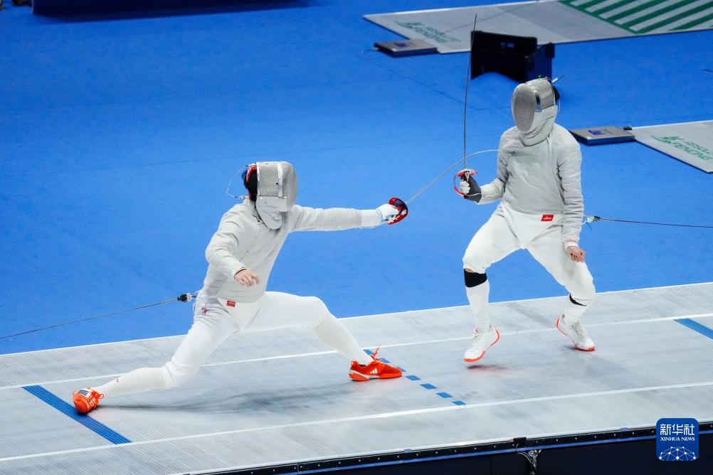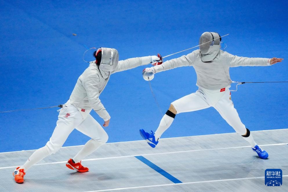 11月18日,上海队选手颜颖慧(左)和江苏队选手沈晨鹏在比赛中。