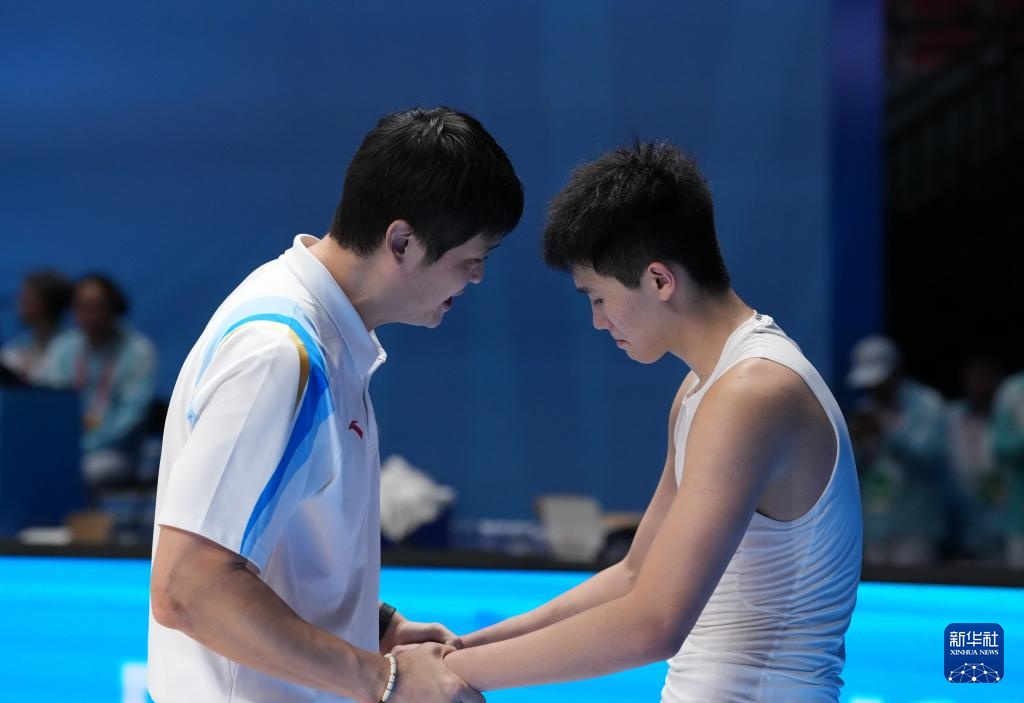 11月18日,浙江队主教练倪加琦(左)在比赛结束后安慰球员李悦洲。