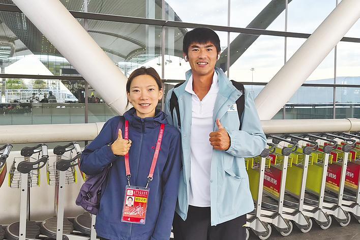 凯旋前,刘治宇(右)与本报记者合影。