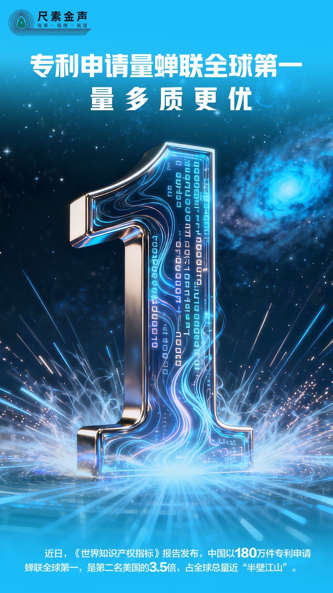 近日,《世界知识产权指标》报告发布,中国以180万件专利申请蝉联全球第一,是第二名美国的3.5倍,占全球总量近“半壁江山”。
