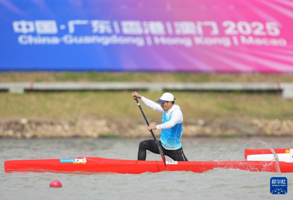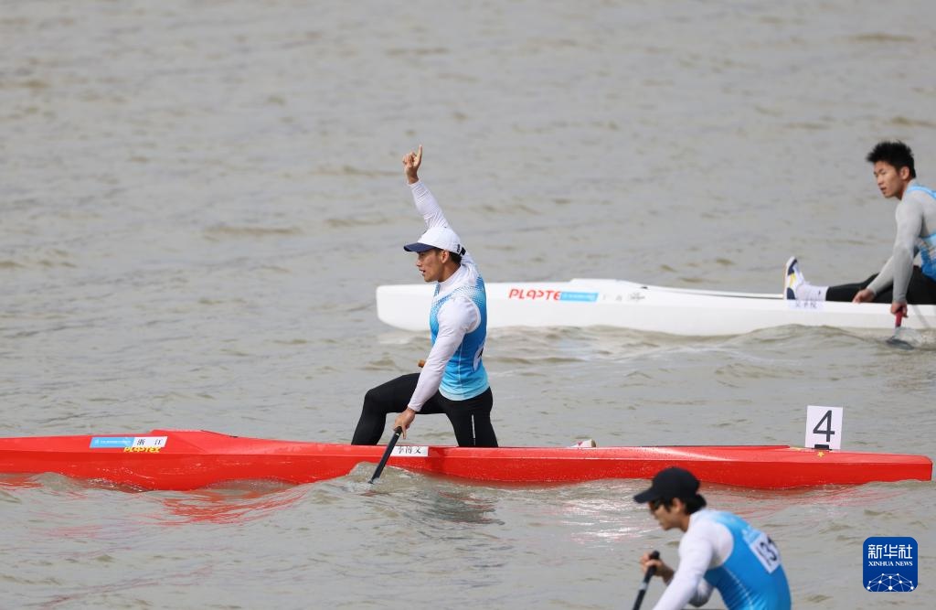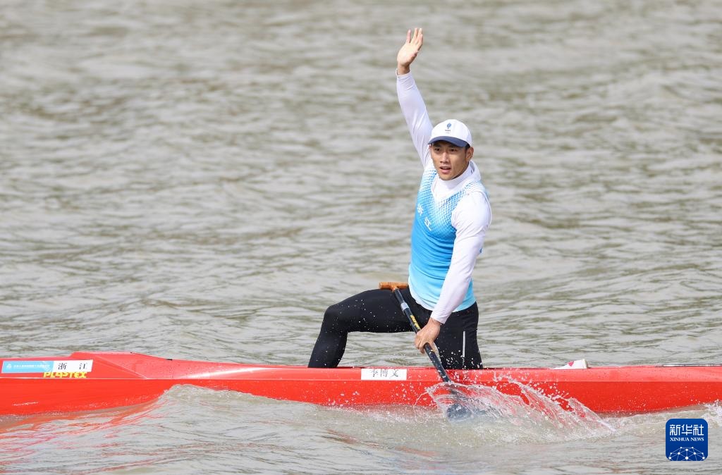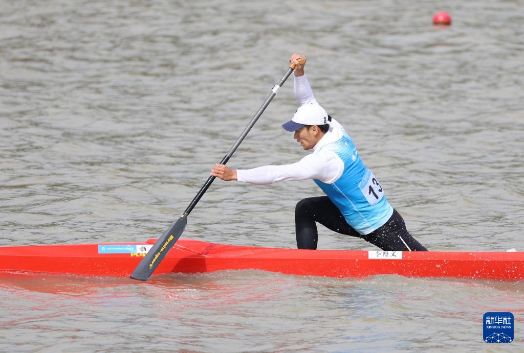 当日,第十五届全国运动会皮划艇静水项目男子1000米单人划艇决赛在广州举行。