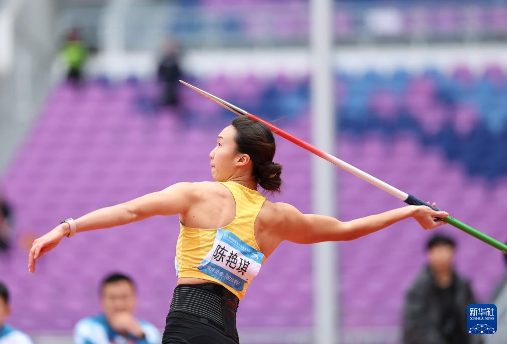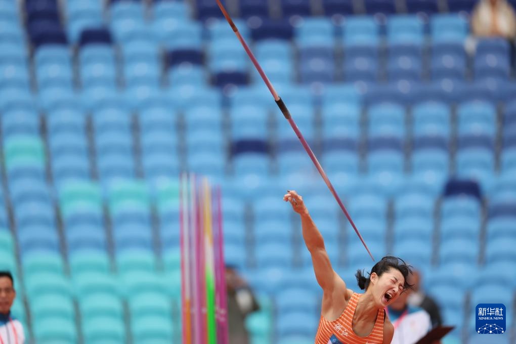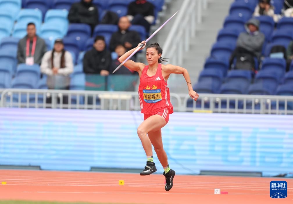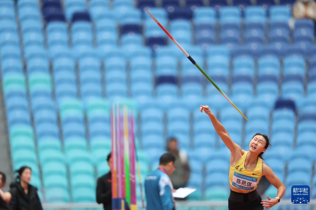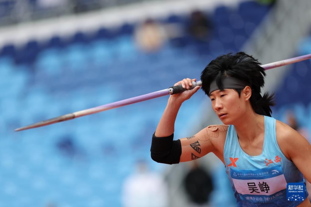 当日,第十五届全国运动会田径项目女子七项全能标枪比赛在广州举行。