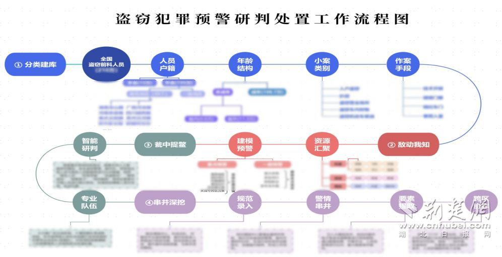图为省公安厅制发的《盗窃犯罪预警研判处置工作流程图》