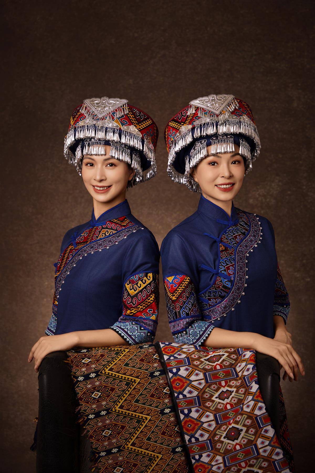 姐姐谭艳华(右)和妹妹谭艳宾身着西兰卡普纹样的民族服饰(受访者供图)